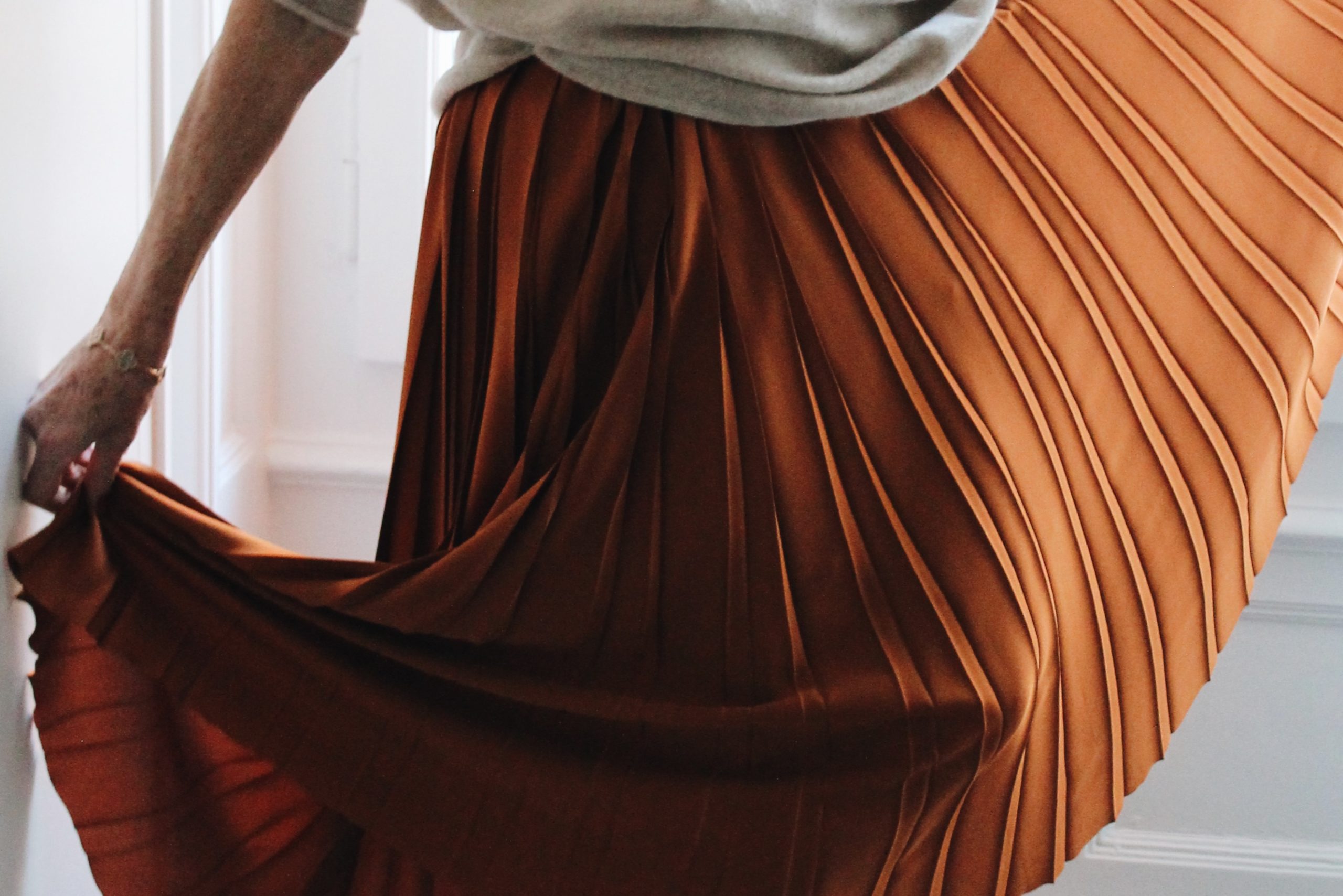 Dominique aime le ski et la vitesse, dévaler les pentes enneigées en écoutant "Oxygène" de Jean-Michel Jarre lui donne un sentiment de liberté. Le vêtement l'accompagne dans le quotidien de sa vie active, sans contraindre le mouvement, il reste fluide et élégant. Notre invitée se plaît à "danser" dans la jupe fluide Marccain associée à un pull en cachemire Hemisphere Cashmere.