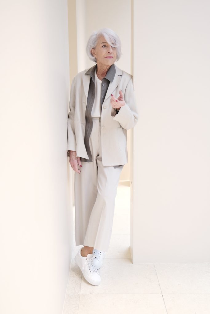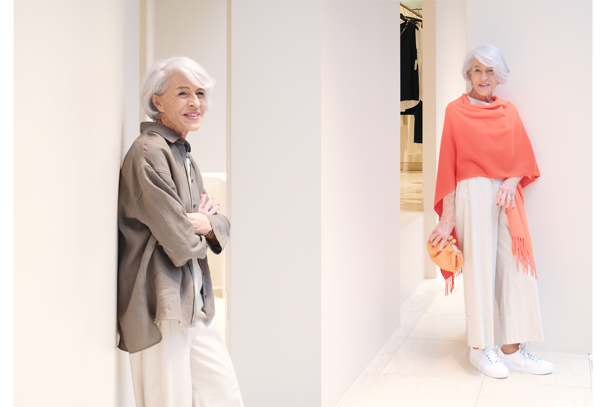 "Si je devais refaire ma vie, je choisirais sans hésiter le domaine de la décoration et de la mode. Je suis attirée par le détail. Le détail d'un vêtement, sa doublure, sa matière, l'accessoire qui l'accompagne m'interpelle." Geneviève aime s'habiller, trouver la beauté d'un vêtement dans sa coupe parfaite et sa matière douce et confortable. Notre interviewée porte à merveille le caftan en voile de coton Sara Roka.