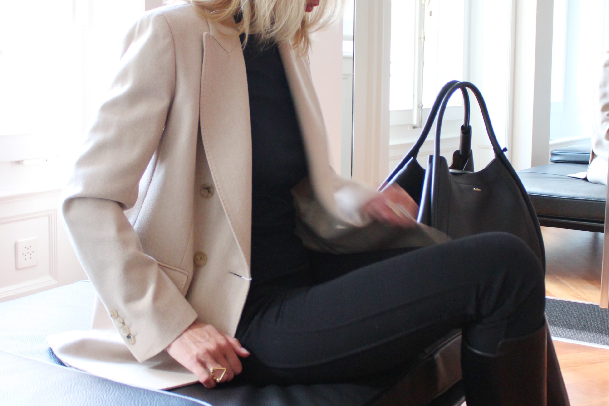 Pour Svitlana, une tenue pour une grande occasion doit rester simple et facile à porter. On est dans l' "effortlesschic". La simplicité et l'élégance de cette combinaison en crêpe noir de MaxMara ont convaincu notre interviewée. Un bijou, tel une bague ou une broche, une pochette apportent la touche finale et personnelle.